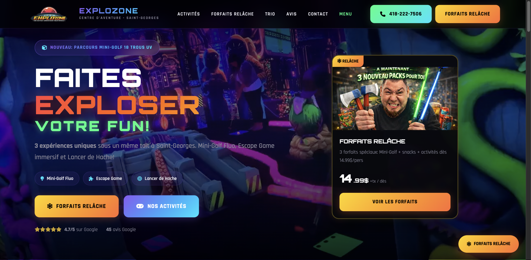 Expérience visuelle forte, énergie cohérente et mécanique de réservation pensée pour convertir sans casser le rythme.